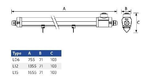 OP 531000043900 LED LÁMPATEST 12-22W 1980-3630LM 4000K 110°x135° IK08 IP66 755MM HACCP+PIR SZENZOR 5